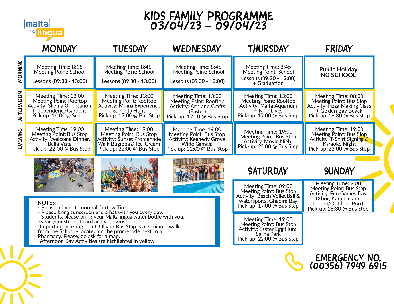 Découvrez votre programme d'activités ci-dessous !Programme de PâquesSemaine 1 (3 avril 2023 - 9 avril 2023)Résidence Junior - Enfants Semaine 1 (3 avril 2023 - 9 avril 2023)Programme familial - Enfants